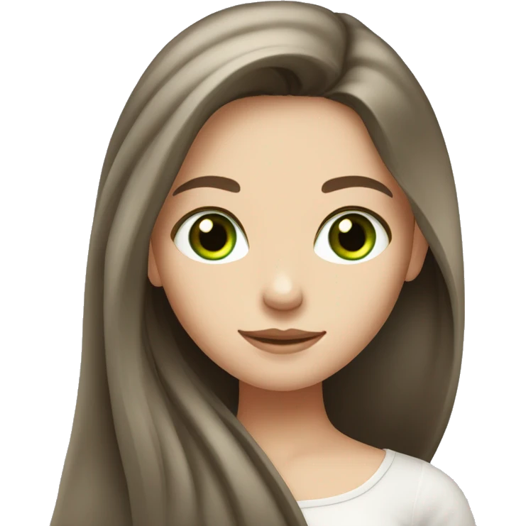 Brunette girl with long hair, white skin, Europe race,green eyes emoji | AI Emoji Generator