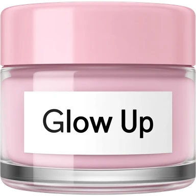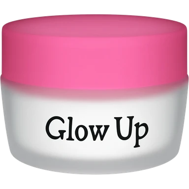 a pink and white cream with a brand name that says glow up emoji