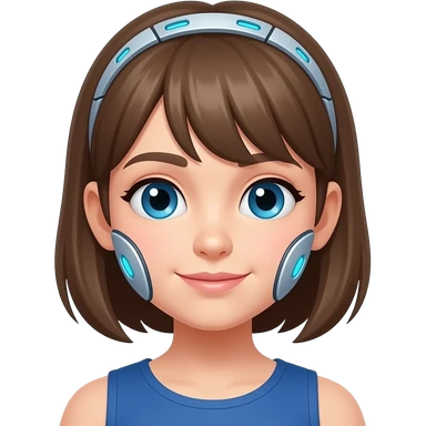 Brunette kid girl long straight hair blue eyes in pink emoji | AI Emoji Generator