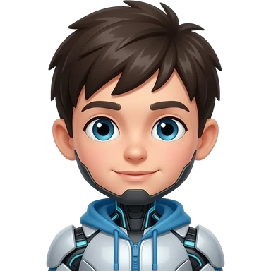 Brown man with straight hair and no facial hair and happy with hoodie black hoodie and kid emoji