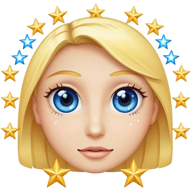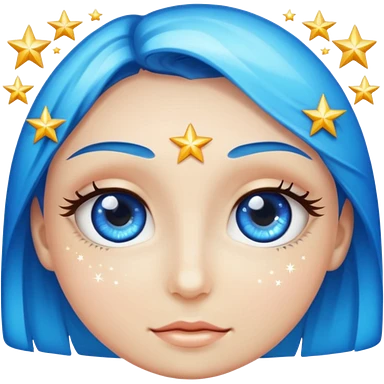 brunette long hair girl with blue eyes sparkling with love glitter and stars in eyes emoji | AI Emoji Generator