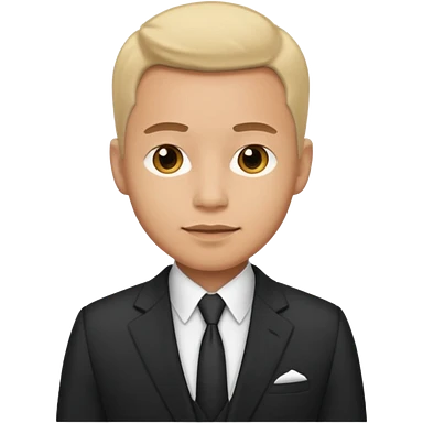 Man with light brown hair in a suit with AirPods in emoji