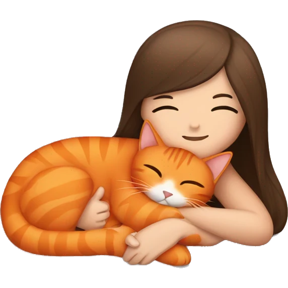 Brunette snuggling with orange cat emoji | AI Emoji Generator