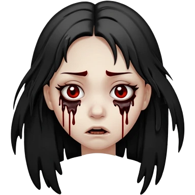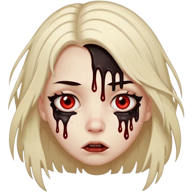 Make me a girl with 2 strands of hair on each side over here face. Under here eyes put black blood dripping. Make make it look like she’s scared emoji