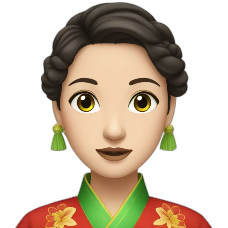 Brunette with green eyes dressed in Chinese traditional clothes emoji | AI Emoji Generator