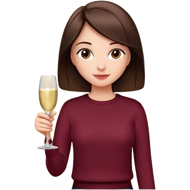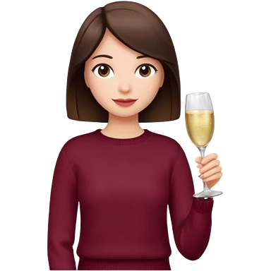 Brunette with her back turned in burgundy sweater with glass of champagne in her hand emoji | AI Emoji Generator