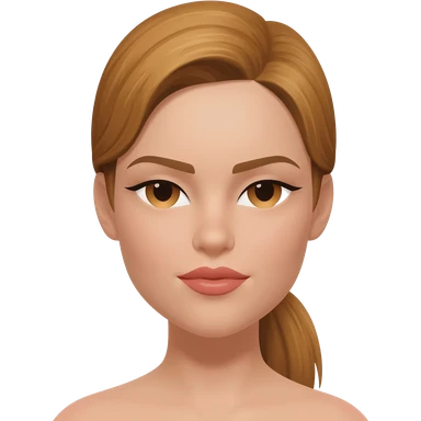 brunette with medium brown hair in a sleek high ponytail, dark brown eyes, medium brown eyelash color, full lips, small button nose, fair olive color skin, with full eye lashes, diamond earring studs, with pink lipstick, nice smile, with medium brown eyebrows emoji | AI Emoji Generator