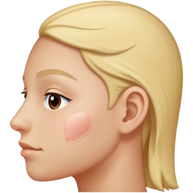 brunette with pimples on her cheek and forehead, still smiling (very visible spots) emoji