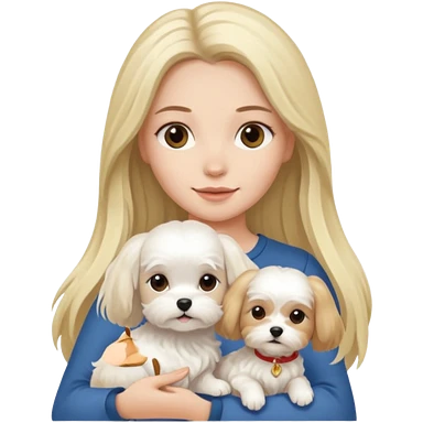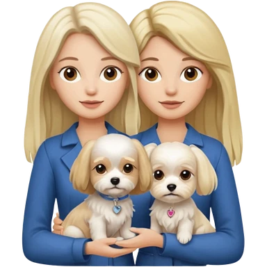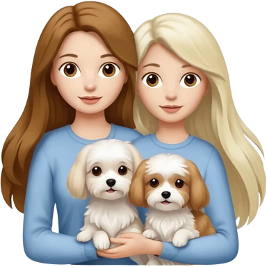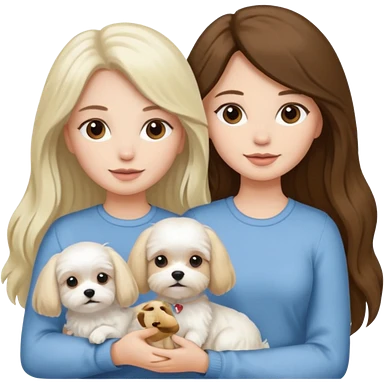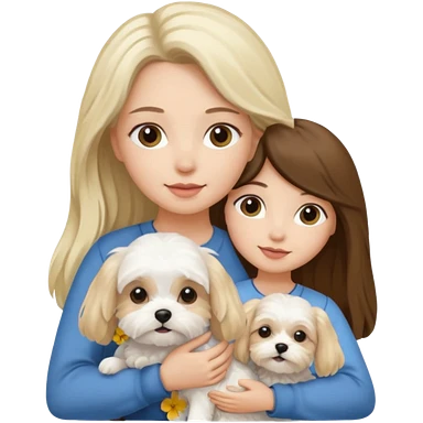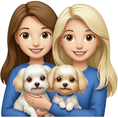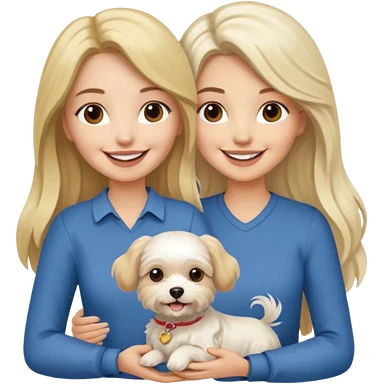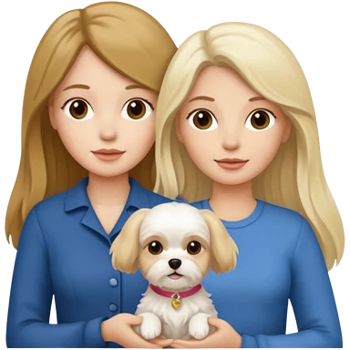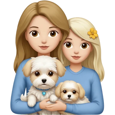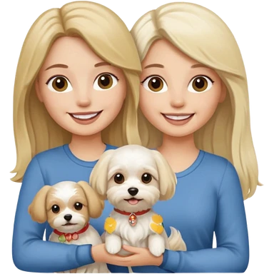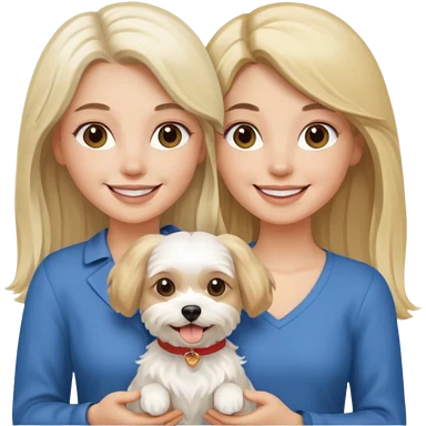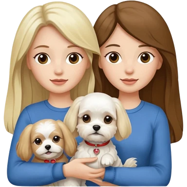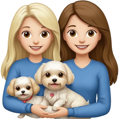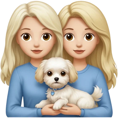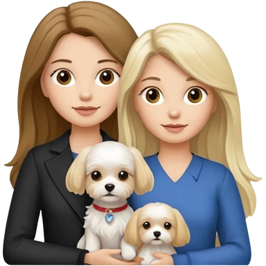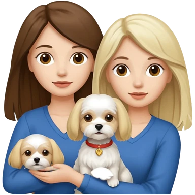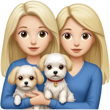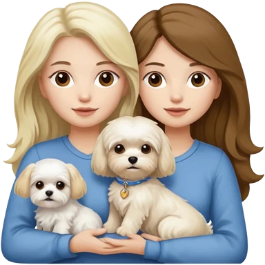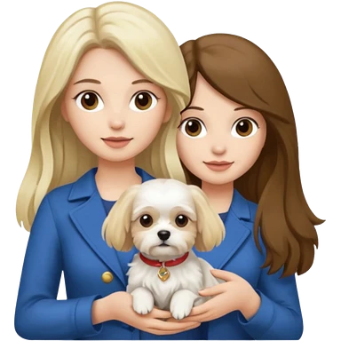 brunette woman and blonde long haired woman holding Maltese dog emoji | AI Emoji Generator
