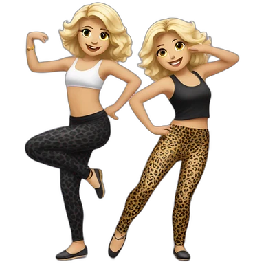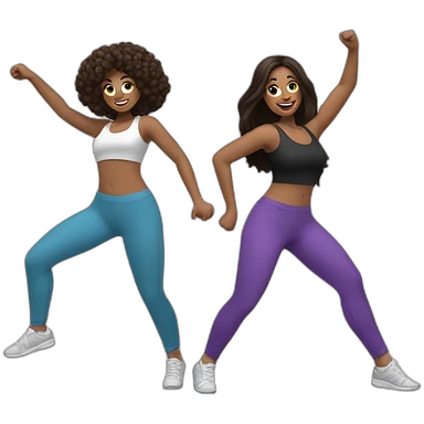 Two Brunette women dancing salsa in leggings and sneakers emoji