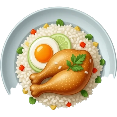 Bowl of Fried chicken wings, a scoop of white rice, and baked beans with sliced sausages emoji