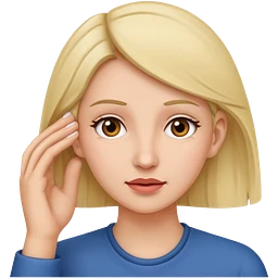 Brunette Woman holding her ear out because she can’t hear emoji | AI Emoji Generator