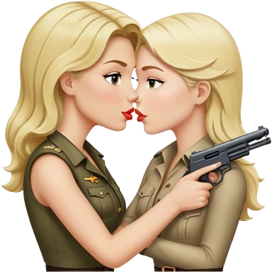 dark red haired girl kissing curled brunette hair girl they’re both white but the brown haired girl is a bit tanner emoji