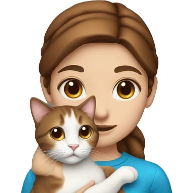 Brunette woman with long hair cuddling short haired calico cat emoji | AI Emoji Generator