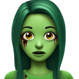 Brunette zombie girl in horror zombie green with bangs emoji | AI Emoji Generator