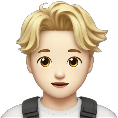 Illustrate a Korean male idol with blond dyed hair, earrings, casual streetwear & confident pose, inspired by Jimin of BTS. emoji