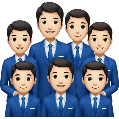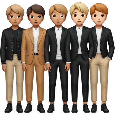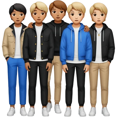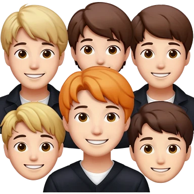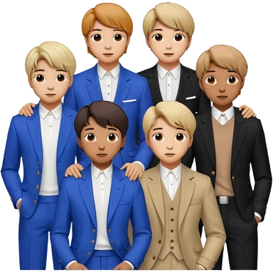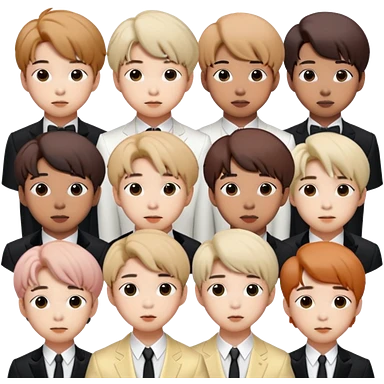 BTS group emoji featuring all seven members together, group pose, cheerful expressions, vibrant colors, simple background emoji