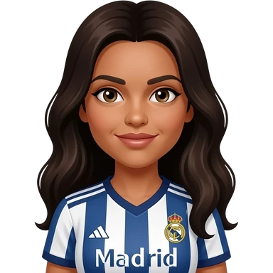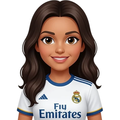 Buat wanita asal berazil kulit sawo matang rambut panjang warna coklat kehitaman menggunakan baju madrid emoji