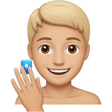 buat cowo malesub memakai baju pink dan tampak tersenyum berkulit putih rambut bewarna kecoklatan emoji