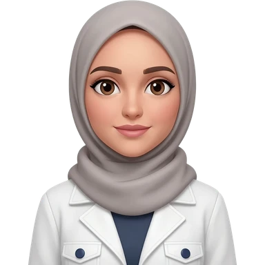 buatkan emoji dengan meggunakan hijab atau kerudung yang menutup kepala dan leher, lalu menggunakan jascook putih dengan kancing biru dongker, wanita berkulit putih emoji