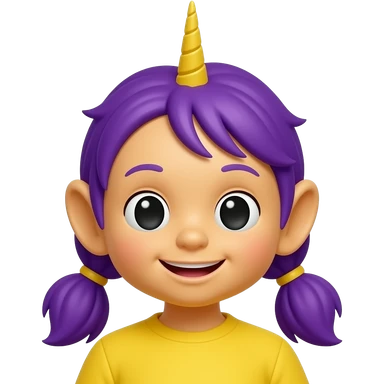 Shirley Shawn the Unicorn from The Wiggles with black eyes, yellow skin, purple hair emoji