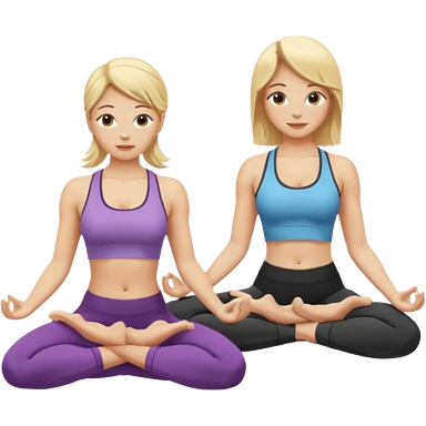 Two women doing yoga both blonde emoji