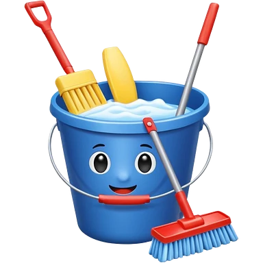 Bucket with soapy water, mop, and spray bottle grouped together with sparkles emoji