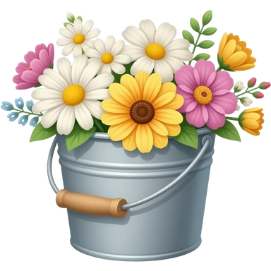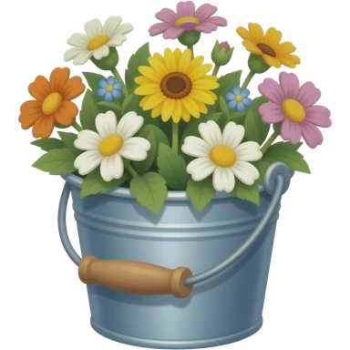 bucket with rainbow paint pouring out of it; have the bucket be tilted at 45 degrees as a 2D emoji; as if someone is pouring paint onto a surface emoji