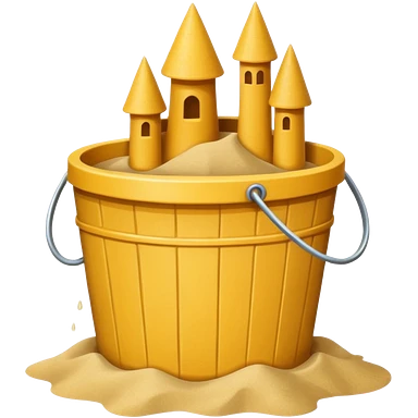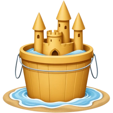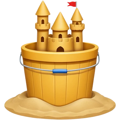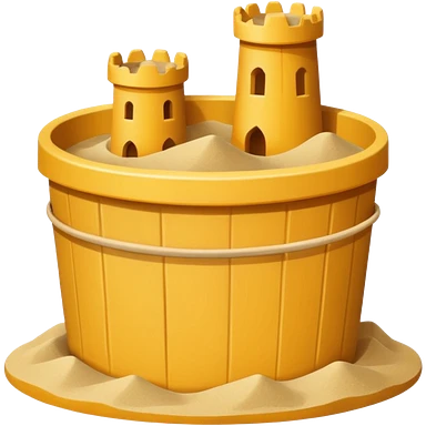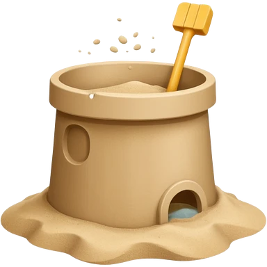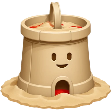 Bucket-shaped sand castle, made with an upside-down pail mold emoji | AI Emoji Generator