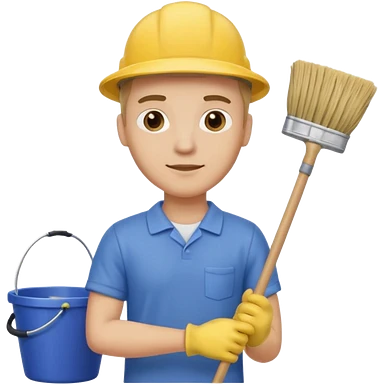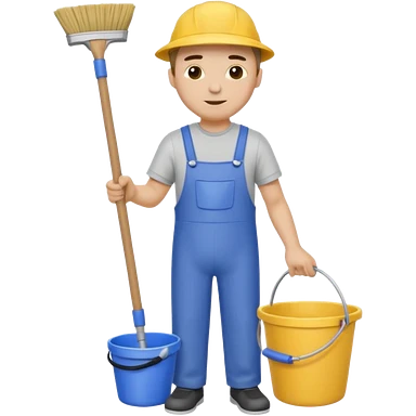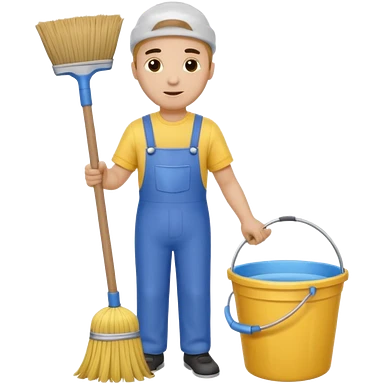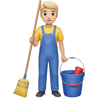 ligth man in cleaning clothes, holding a broom and a bucket emoji