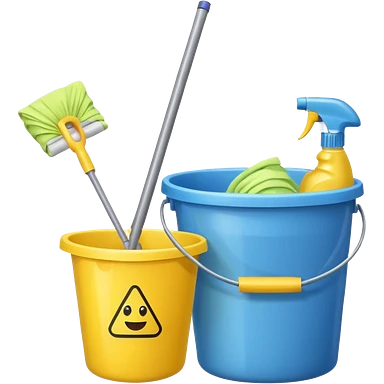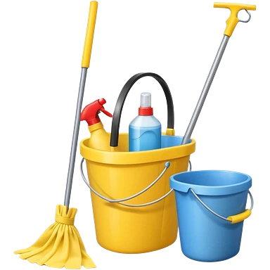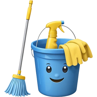 Bucket with soapy water, mop, and spray bottle grouped together with sparkles emoji