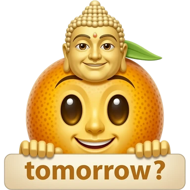 Buddha kumquat holding sign saying “tomorrow?” emoji