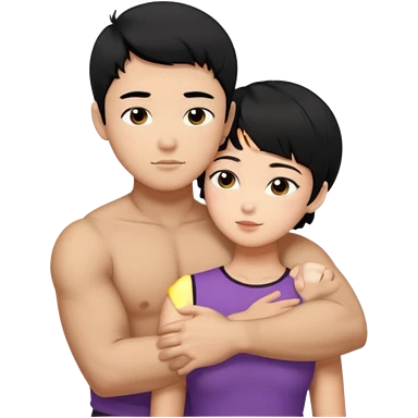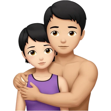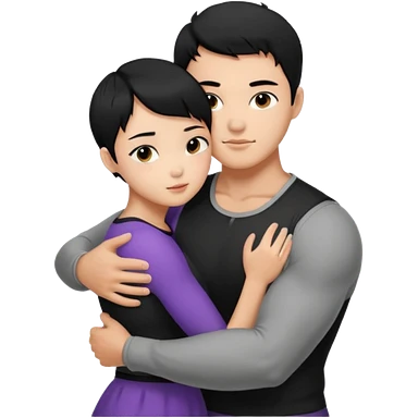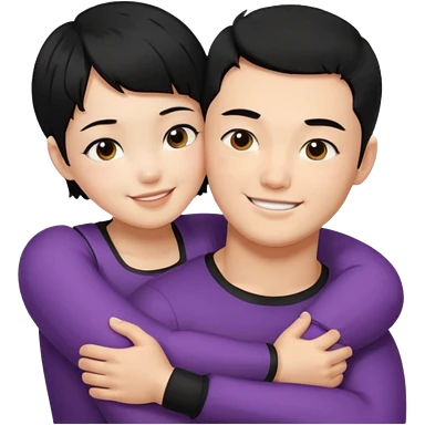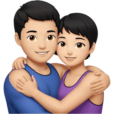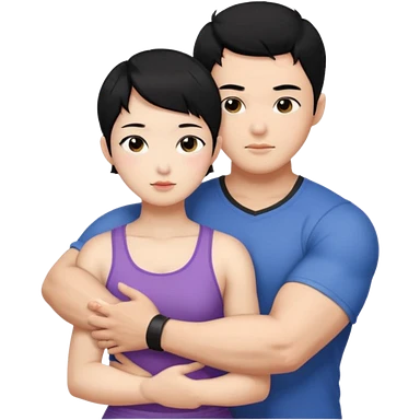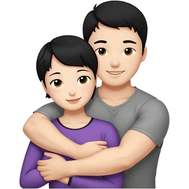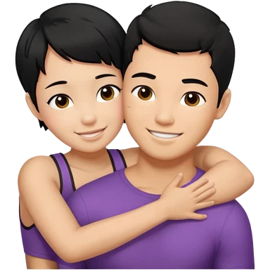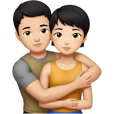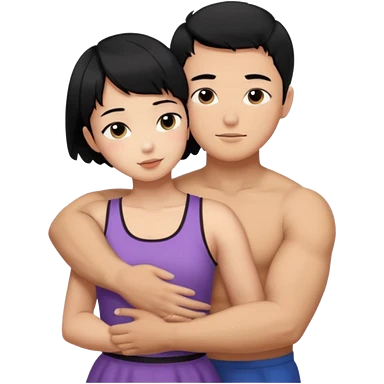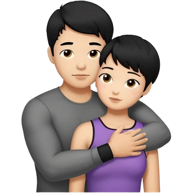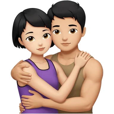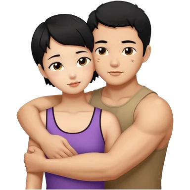 buff Asian Man black hair hugging girl with black pixie cut emoji | AI Emoji Generator