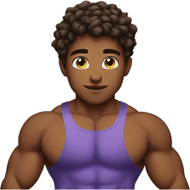 Buff muscular handsome teen guy, brown messy hairy, medium length hair, brown eyes, serious expresssion, black tank top emoji | AI Emoji Generator
