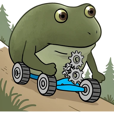 bufo hiking uphill with gears emoji