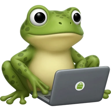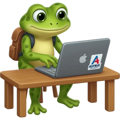 I need bufo the frog working at a laptop and that laptop has the Astrix Security name on the case like a sticker emoji