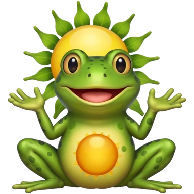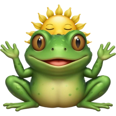 bufo frog holding sun, bufo frog eyes are closed, bufo frog has blond hair emoji