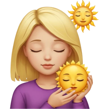 bufo frog holding sun, eyes are closed it has blond hair it is a girl emoji
