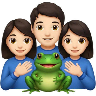 Bufo with two best friends one a girl dark hair other man dark hair emoji | AI Emoji Generator