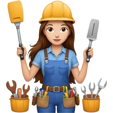beautiful girl with long brown hair building new kitchen emoji