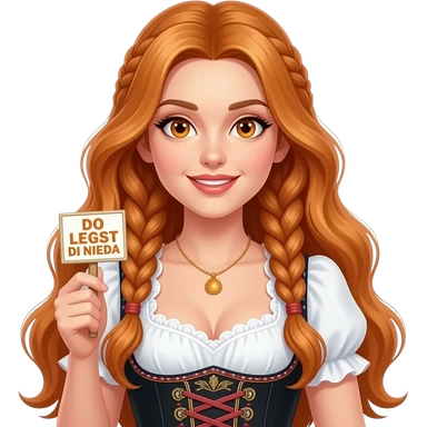 sexy girl with overlong ginger hair in braids and ginger eyes wearing a dirndl holding a DO LEGST DI NIEDA sign emoji