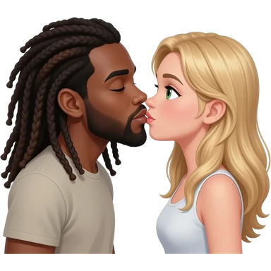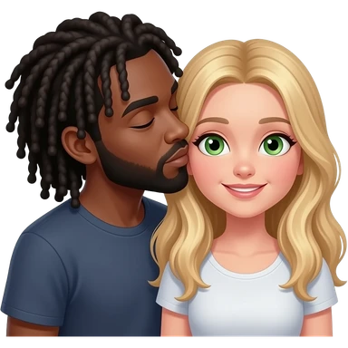 blak guy with long dreads kissing girl with long blond hair and green eyes emoji
