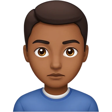 es negro tiene poco pelo cejas grande y fuerte ropa azul emoji