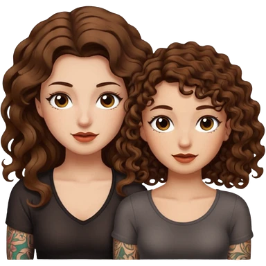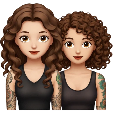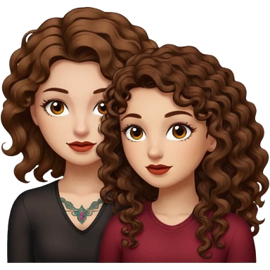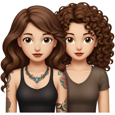 pact wink — long wavy brown hair tattooed woman and short tight curly brown hair woman — secret look emoji