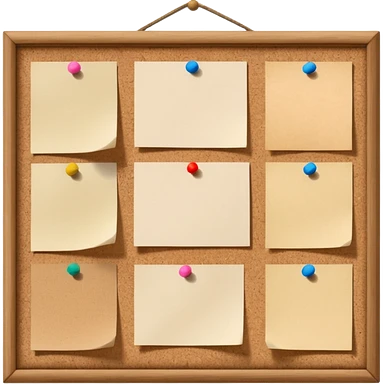 bulletin board with just a few sticky notes pinned to it, minimal emoji