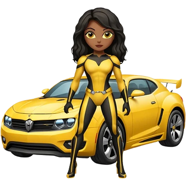 bumblebee being friends and holding hands with a girl with long black hair emoji