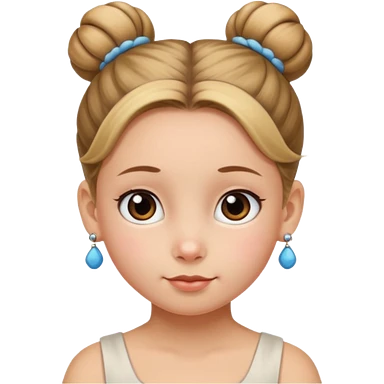 Thin White skinned blonde haired blue eyed woman with black glasses black stud earrings hair in bun emoji