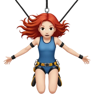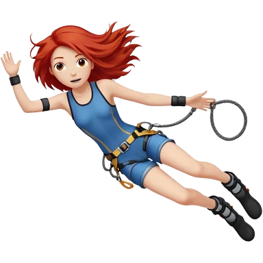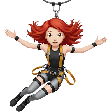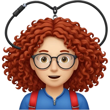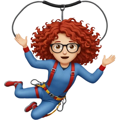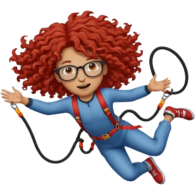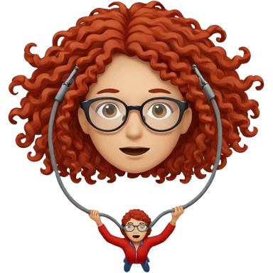 bungee jumping face only with hair flying red long curly hair and glassess emoji