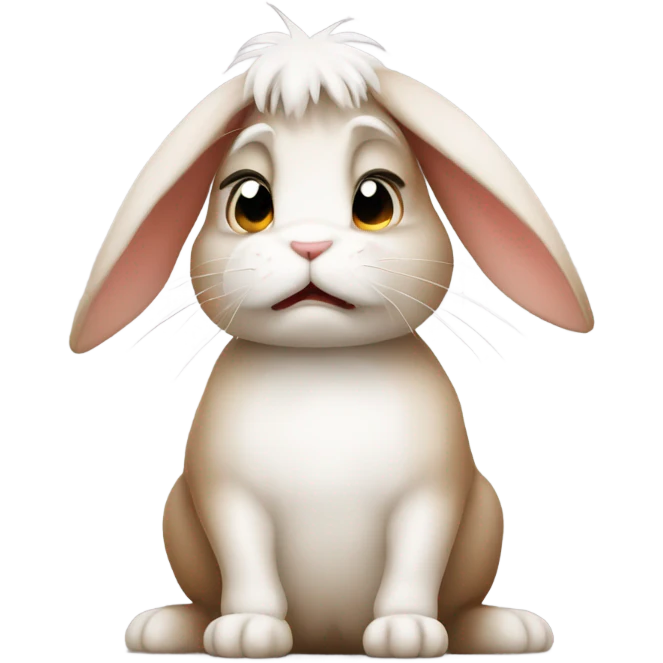 2 bunnies, 1 with brown and black spotted ears 1 with one split ginger and black ear and one spotted emoji