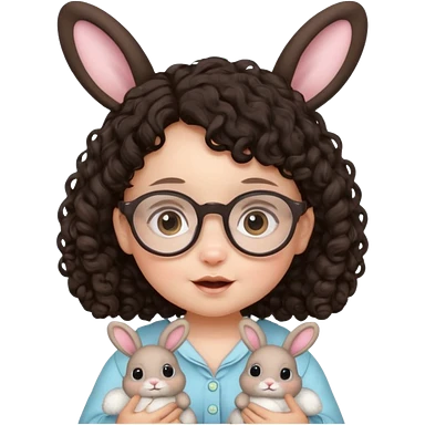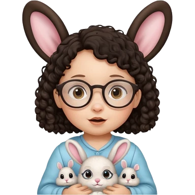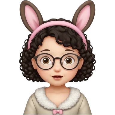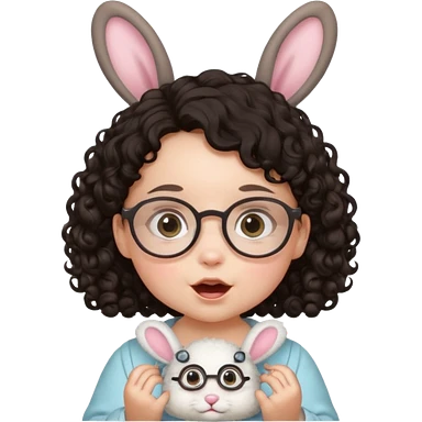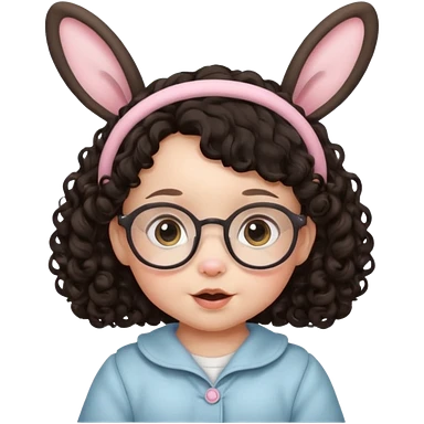 bunny ear wearing small baby dark haired curly spectacled emoji
